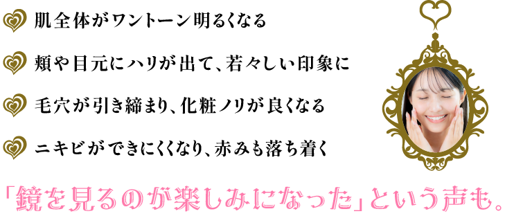 - 毛穴が引き締まり、化粧ノリが良くなる